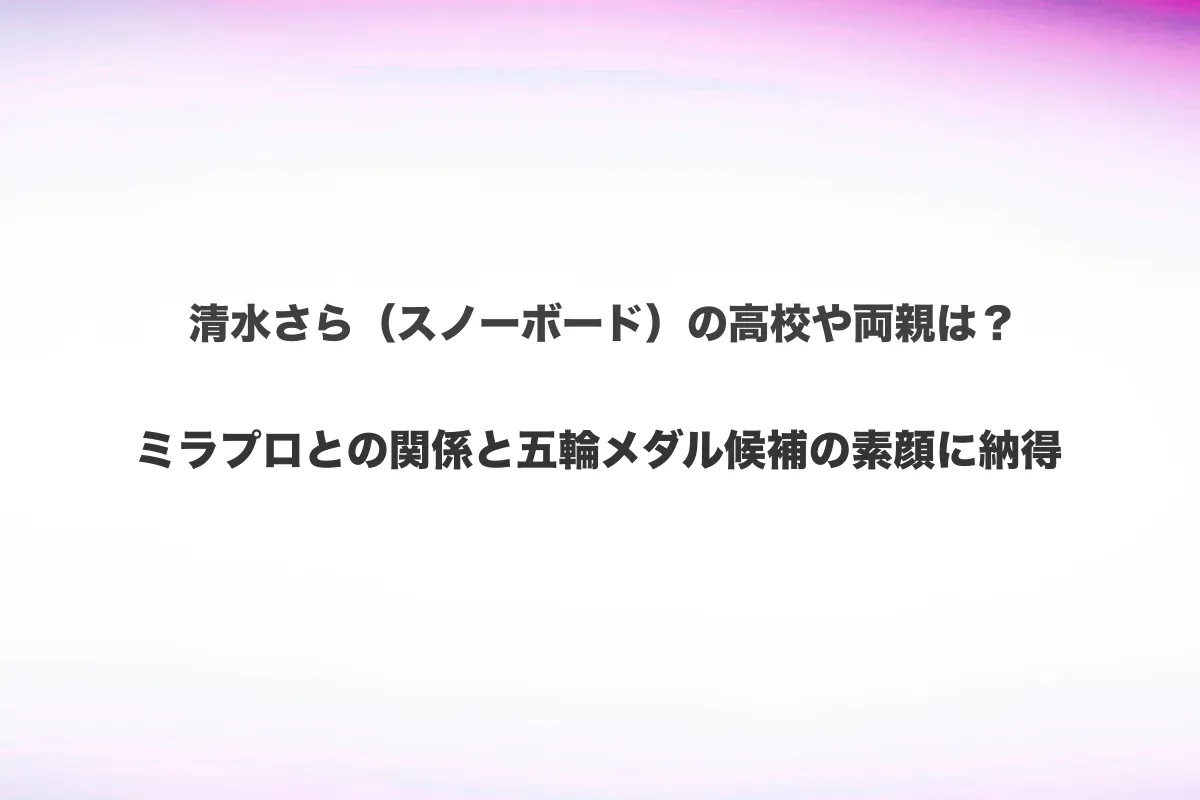 この記事では、清水さら選手の高校や両親、スポンサー企業「ミラプロ」との関係、競技経歴から五輪メダル候補と言われる理由、そして素顔や人柄まで詳しく調べてまとめました。